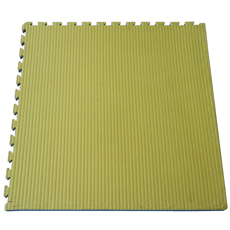 Diese Sportmatte kann beidseitig verwendet werden und eine individuelle Trainingsfläche kann nach Wunsch gestaltet werden. So erhalten Sie quasi zwei Matten zum Preis von einer. Durch die außergewöhnliche Farbkombination gelb-blau lassen sich mit dieser Sportmatte auch Kampfflächen farbig gestalten, ebenso können durch Farbwechsel einzelne Bereiche hervorgehoben werden, was besonders im Fitnessbereich ein gern genutzter Vorteil dieser Matte ist.