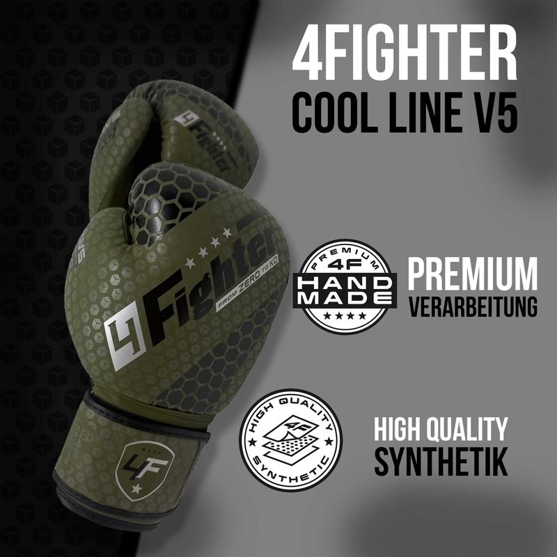 4Fighter Boxhandschuhe Cool Line V5 "From Zero to Ko" / Olivgrün-Schwarz PU
