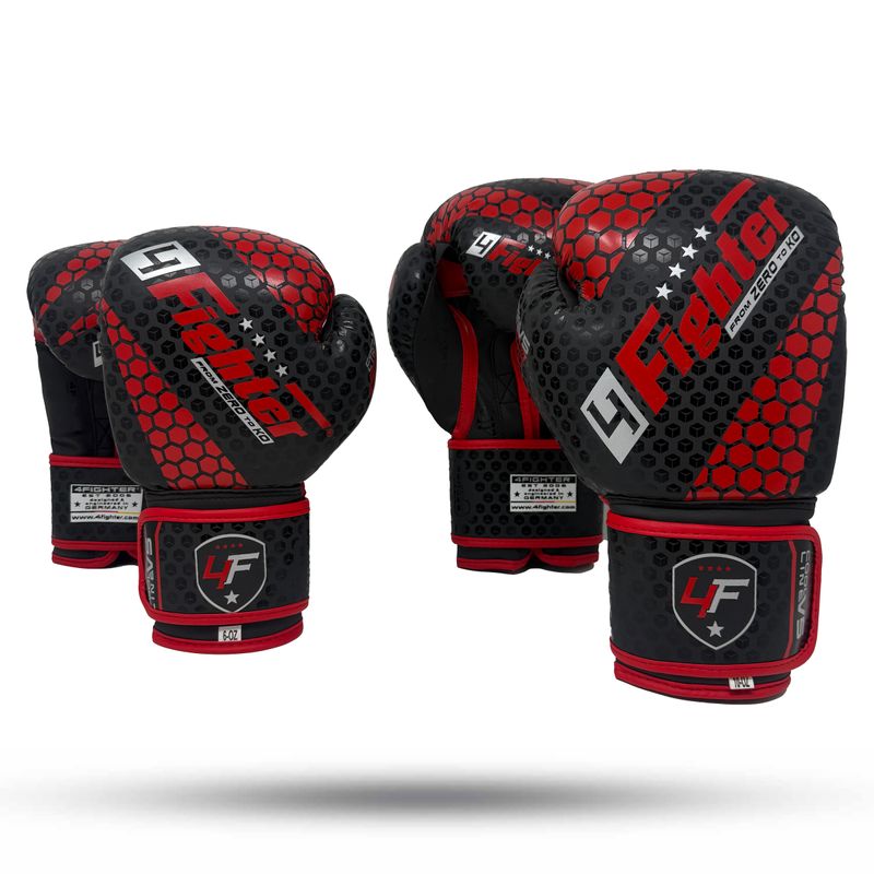 4Fighter Boxhandschuhe Cool Line V5 "From Zero to KO" / Schwarz-Rot PU