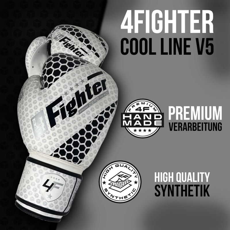 4Fighter Boxhandschuhe Cool Line V5 "From Zero to KO" / Weiß-Schwarz PU