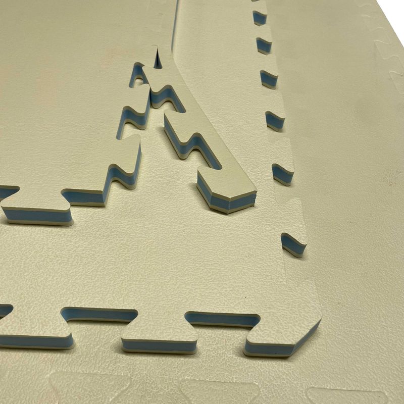 Alfombra bicolor reversible con bordes dentados, dimensiones aprox.100 x 100 x 2 cm. Cada tapete enchufable se suministra con 2 piezas de borde (aprox. 2 cm de ancho).