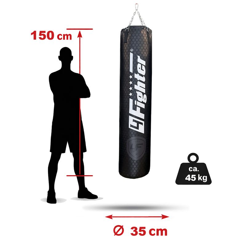 4Fighter Saco de boxeo Classic negro 150 cm x Ø 35 cm ± 40 kg