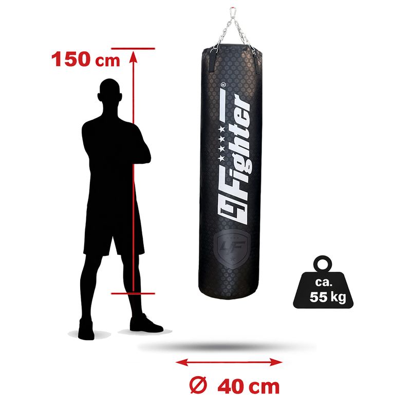 4Fighter Saco de boxeo Classic negro 150 cm x Ø 35 cm ± 40 kg
