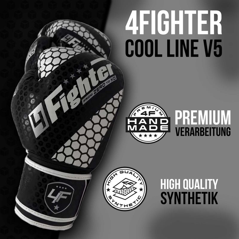 Guantes de boxeo 4Fighter Cool Line V5 "From Zero to KO" / Negro-Blanco PU
